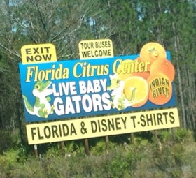 Large billboards advertising fresh orange juice and souvenirs drew us in like moths to the flame. As soon as the car stopped in the parking lot, my brother and I tore into the store for orange ice cream and souvenirs that would likely be lost or broken before we started the drive home. I was really interested in the live baby alligators and preserved gator heads. Sadly, neither was allowed in the car.